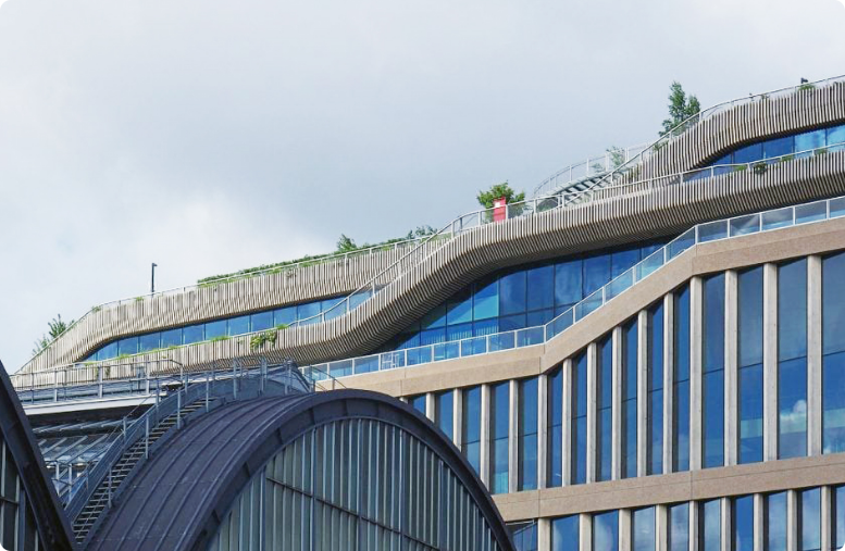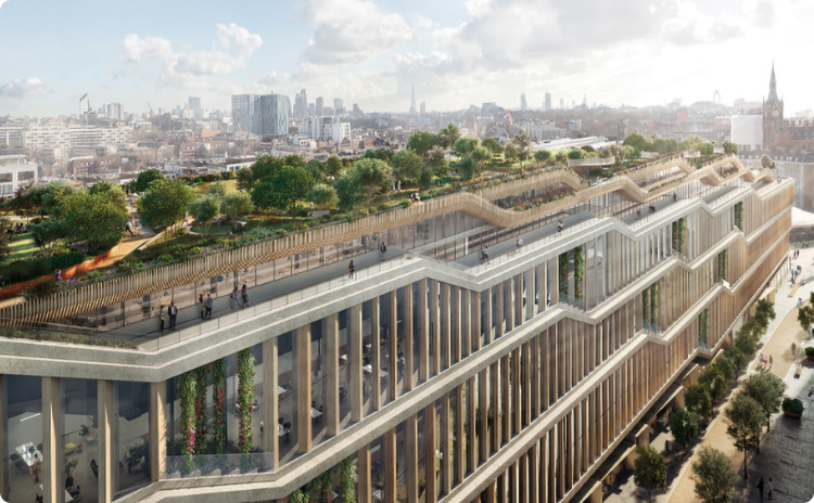 设计将这座建筑视为“基础设施的延伸”,其设计灵感正源自国王十字区独特的城市肌理。这个区域充满了各种建筑类型与空间的奇妙碰撞,铁路枢纽、道路网络、运河系统与其他基础设施在此层层叠加,构成了伦敦交通最发达的节点。受到这种混杂特质启发,设计将谷歌新总部视为基础设施的有机组成部分,采用可互换的模块化构件,确保建筑在未来数十年都能保持灵活性。