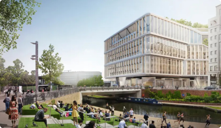 建筑全长达330米——比英国最高建筑the Shard的高度还要多,建成后将与周边两栋谷歌持有的建筑共同构成企业园区,这亦是谷歌在美国境外首个全资持有的办公空间。